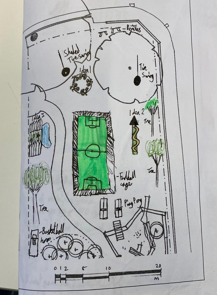 Our group were also a sporty bunch who – in an ideal world – would like a football pitch, basketball court, skatepark and climbing wall – although sadly there is not enough space for everything.